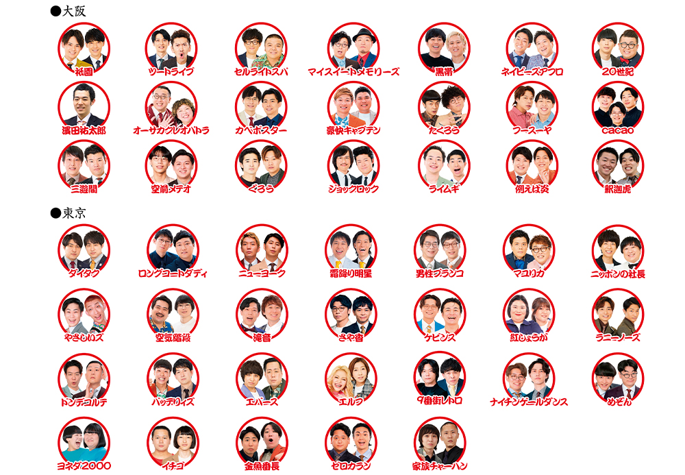 ダイタク、ロングコートダディ、ニューヨーク、霜降り明星、男性ブランコ、マユリカ、ニッポンの社長、やさしいズ、空気階段、滝音、さや香、ケビンス、紅しょうが、ラニーノーズ、ドンデコルテ、バッテリィズ、エバース、エルフ、9番街レトロ、ナイチンゲールダンス、めぞん、ヨネダ2000、イチゴ、金魚番長、ゼロカラン、家族チャーハン
