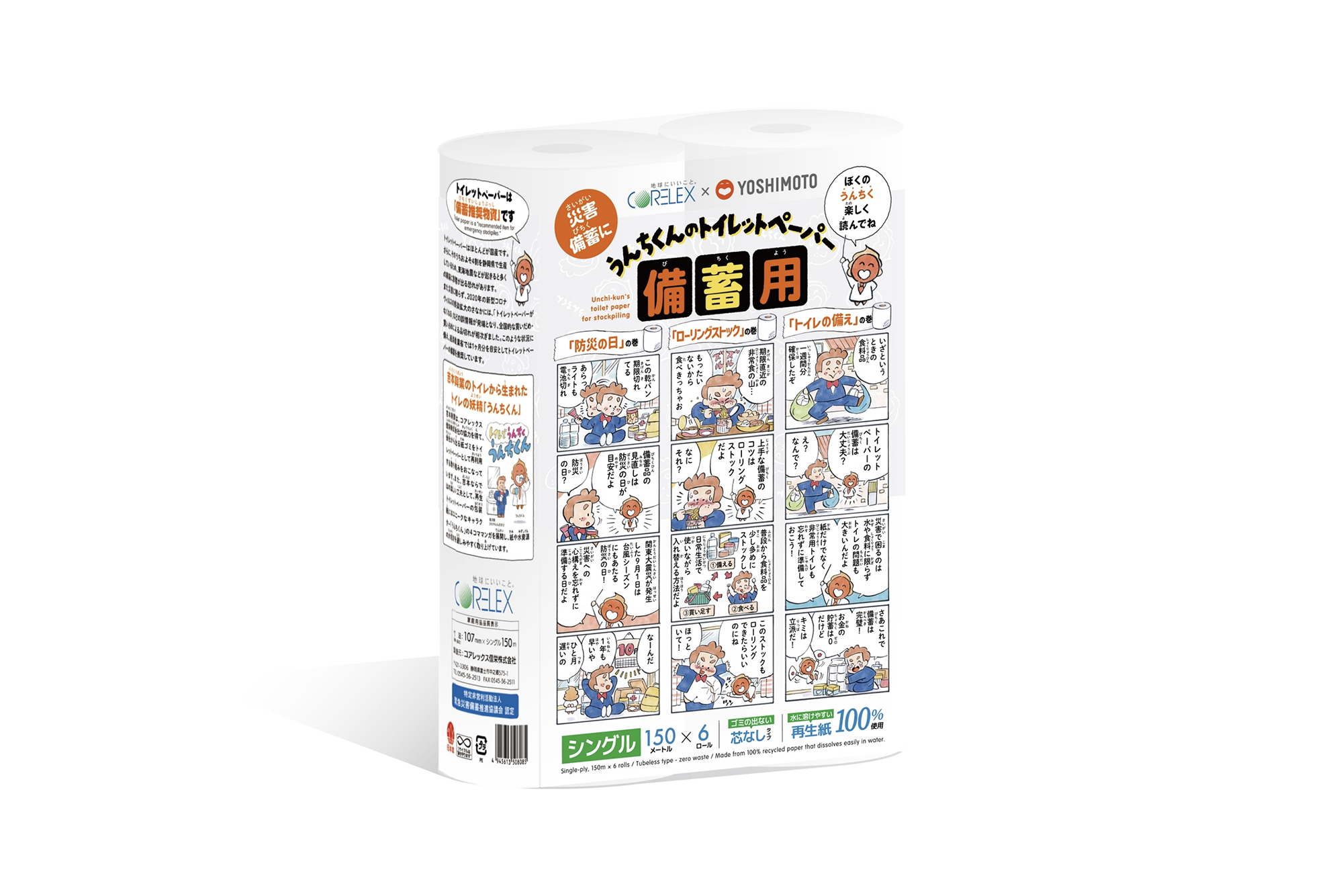 コアレックス信栄と吉本興業は、2020年よりコアレックス信栄が独自に持つ、紙ごみリサイクル技術を活用し、吉本興業東京本部やイベント等で発生する紙ごみをリサイクルし、オリジナルトイレットペーパー(うんちくんのトイレットペーパー)として再生・循環させる取り組みを行っています。