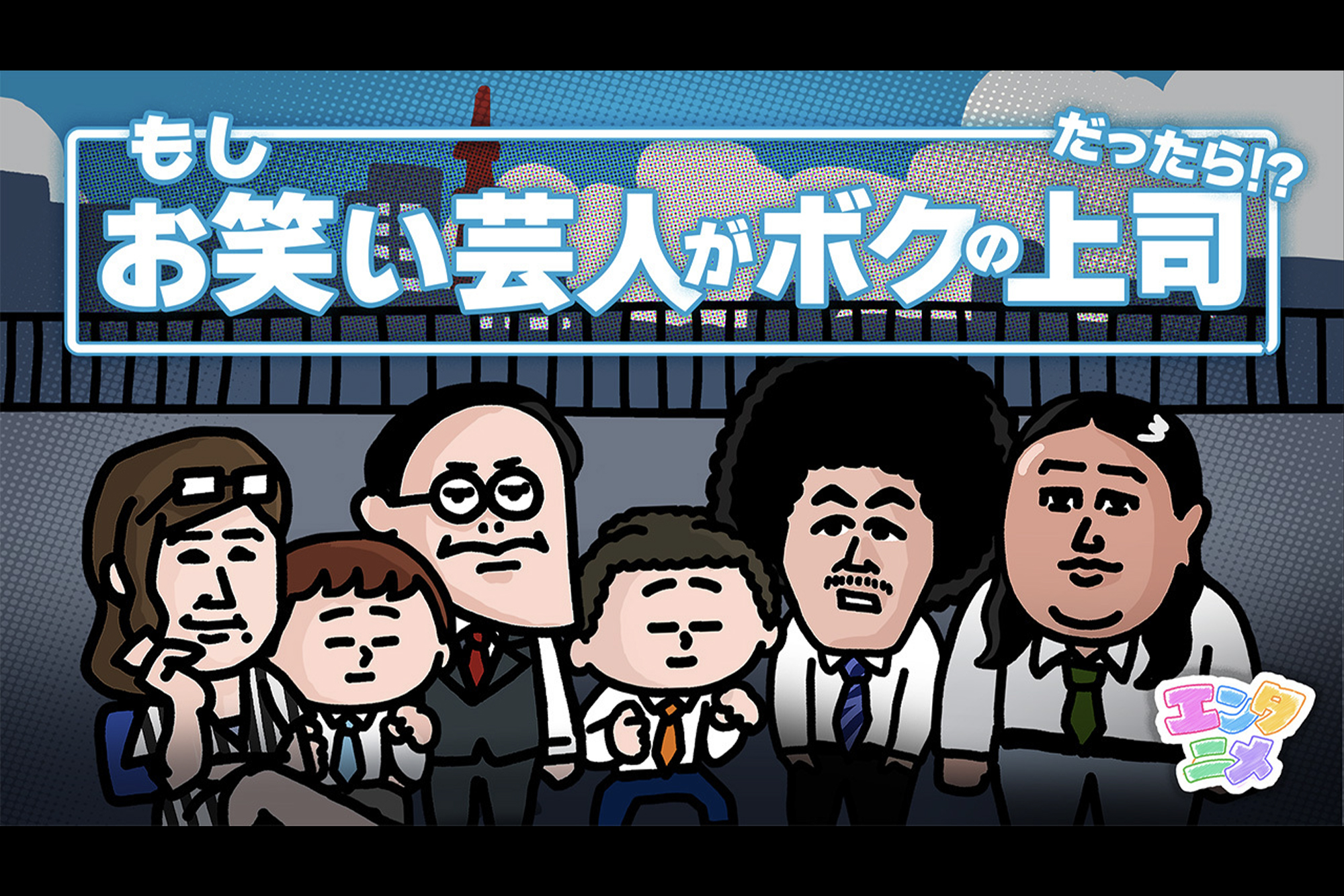 「もしお笑い芸人がボクの上司だったら!?」は、「ナミちゃんとミーコさん」「TOKYO MERスピンオフアニメ」「新人ナースボルみ」など数々のヒットコンテンツを生み出してきたクリエイティブ集団・FUNNYMOVIEとの共同企画で「世の中を笑顔にするお笑い芸人の力をキャラクター化して日本中を元気に!」をコンセプトに、もしもと興業の新入社員でごくごく普通のサラリーマン・みっちーと、その上司であるお笑い芸人たち(トータルテンボス・藤田、ロバート・秋山、アンシュタイン・稲田、コットン・きょん)による、ゆるゆるだけどちょっとタメになる日常の一コマを描いたお仕事アニメです。
