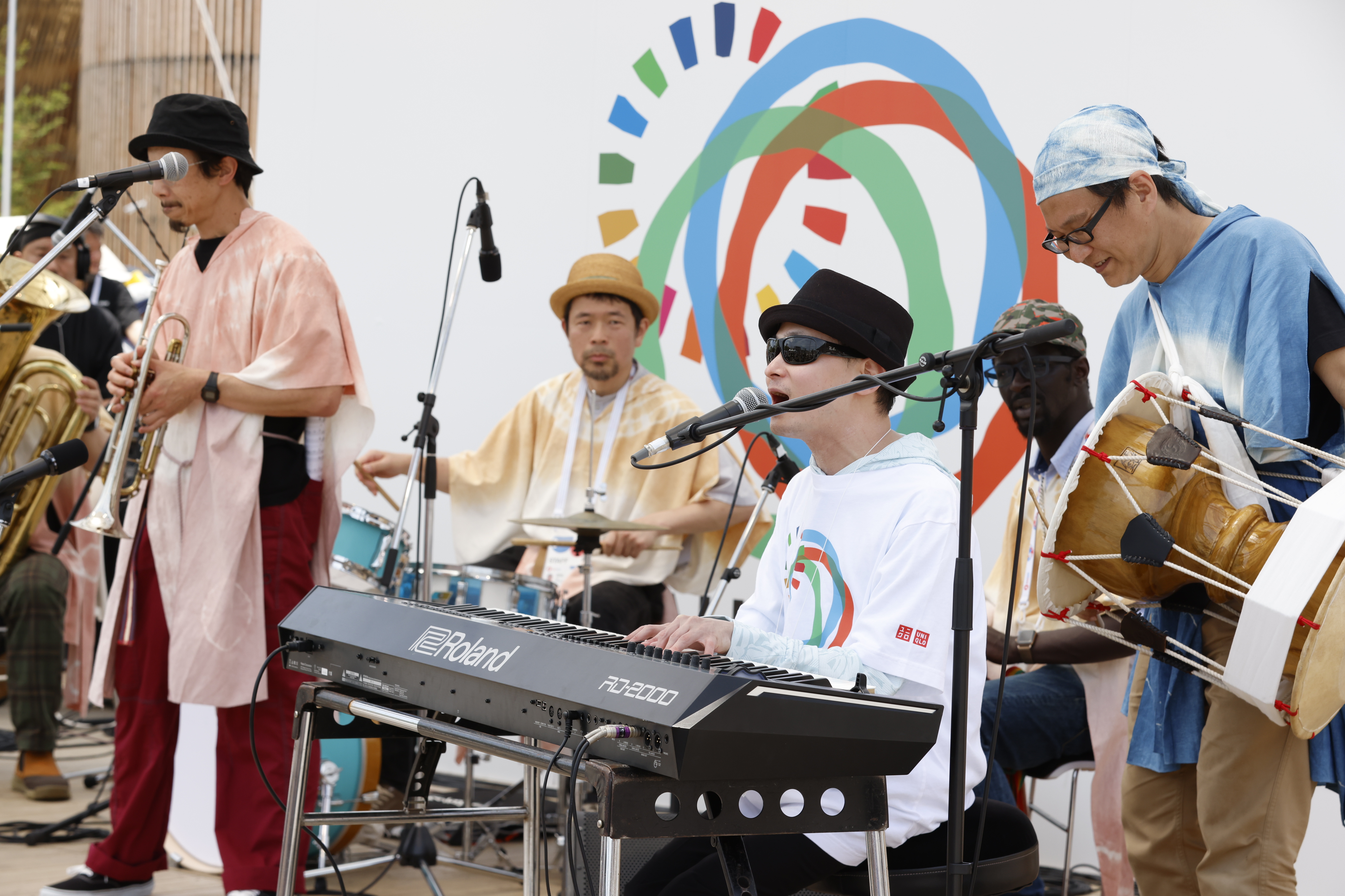 12:45~は音楽を通して世界の多様性に触れ、参加者みんなが 笑顔になれる音楽ライブ 「KURAGE Band×木下航志Special Collaboration」が開催されました。