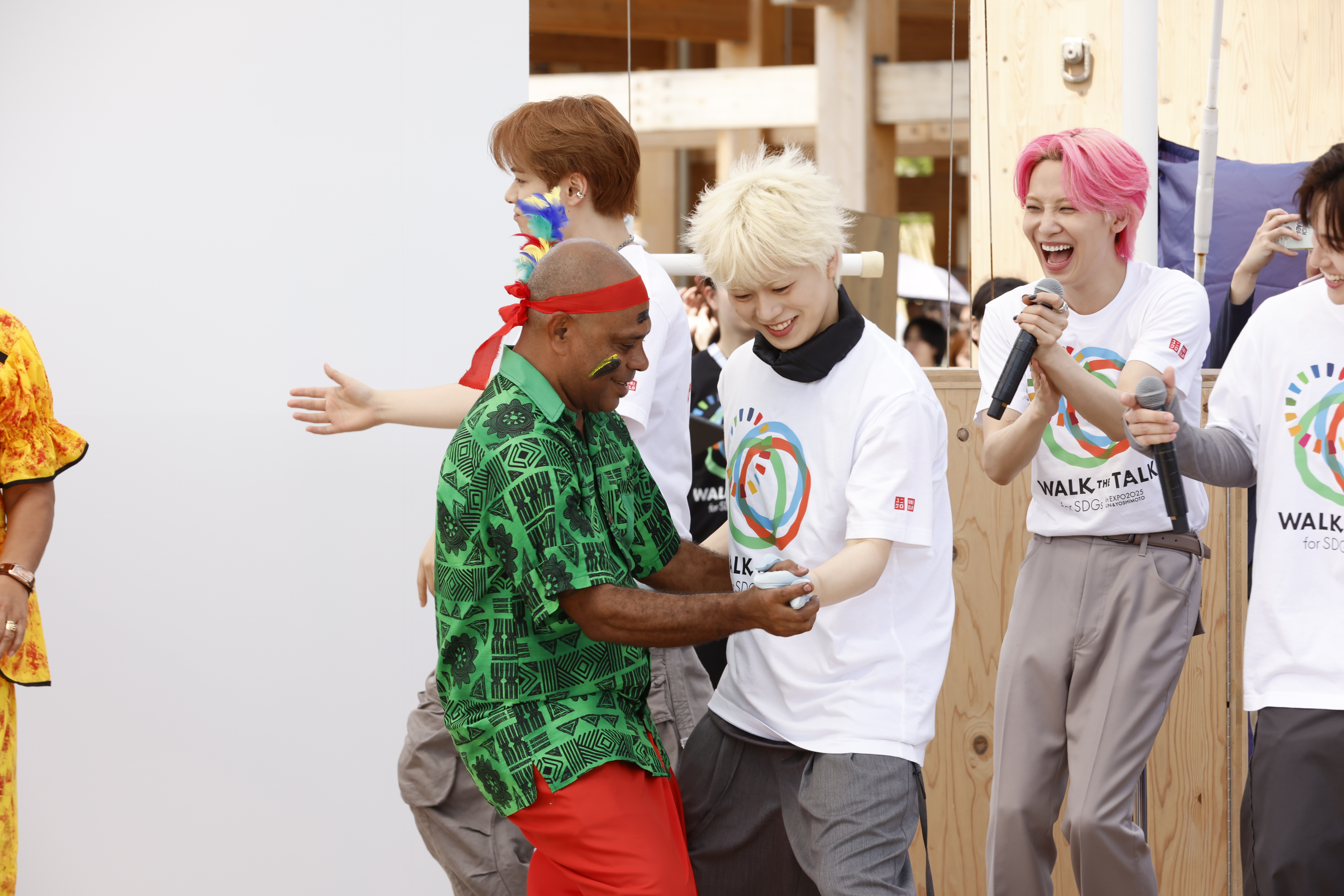 このステージでは、全国からバヌアツ留学生が集結し、伝統的なダンスを披露。マユリカ、そしてスペシャルサポーターのJO1のメンバーも一緒に楽しく踊りました。