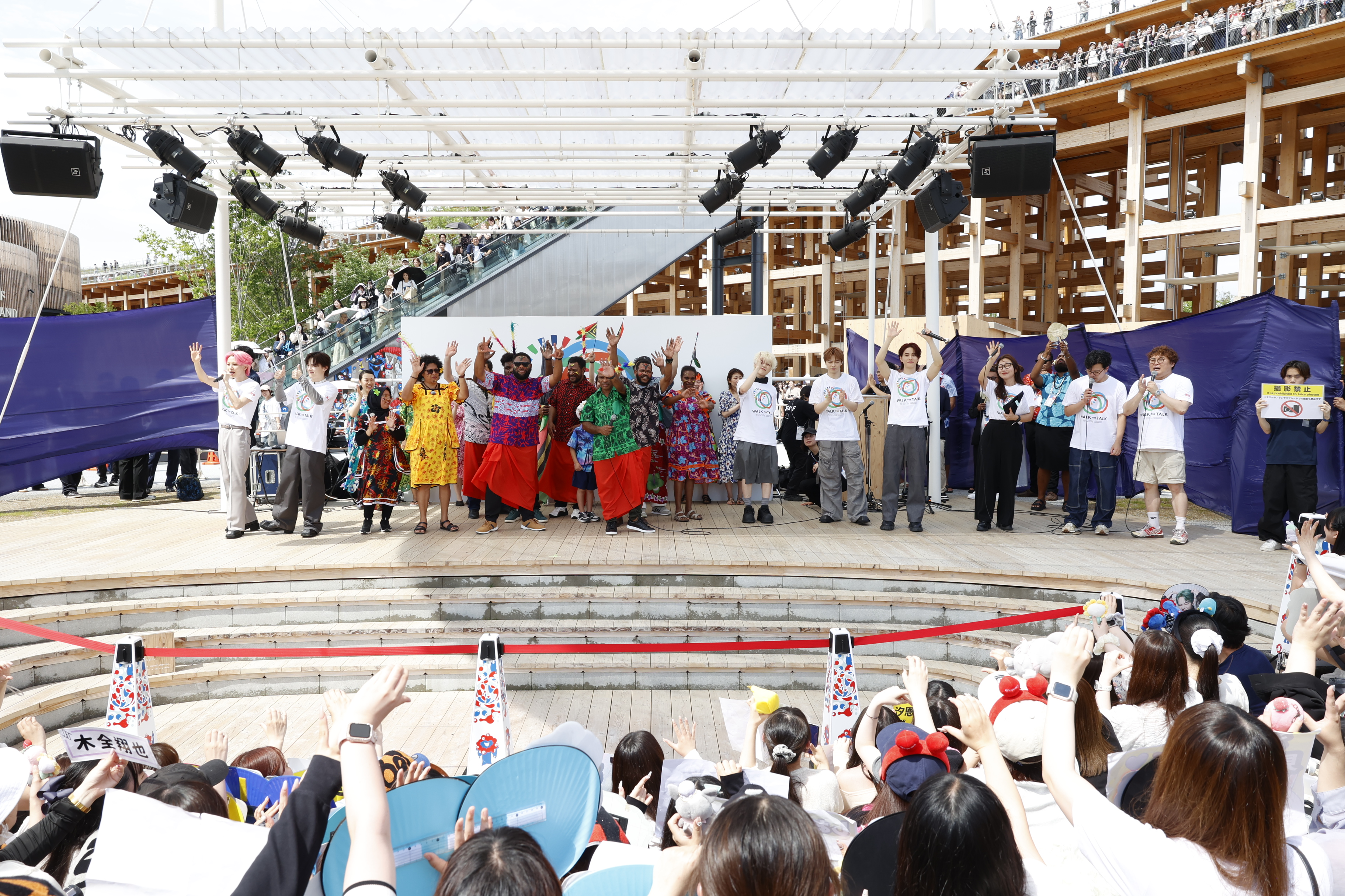 メイン会場のEXPOホール「シャインハット」や国連パビリオン、よしもと waraii myraii館など、万博会場の各所で多彩なイベントが行われ、ポップアップステージ 東内では、各国のさまざまな文化や取り組みを吉本芸人や、JO1のメンバーと一緒に体験しました。