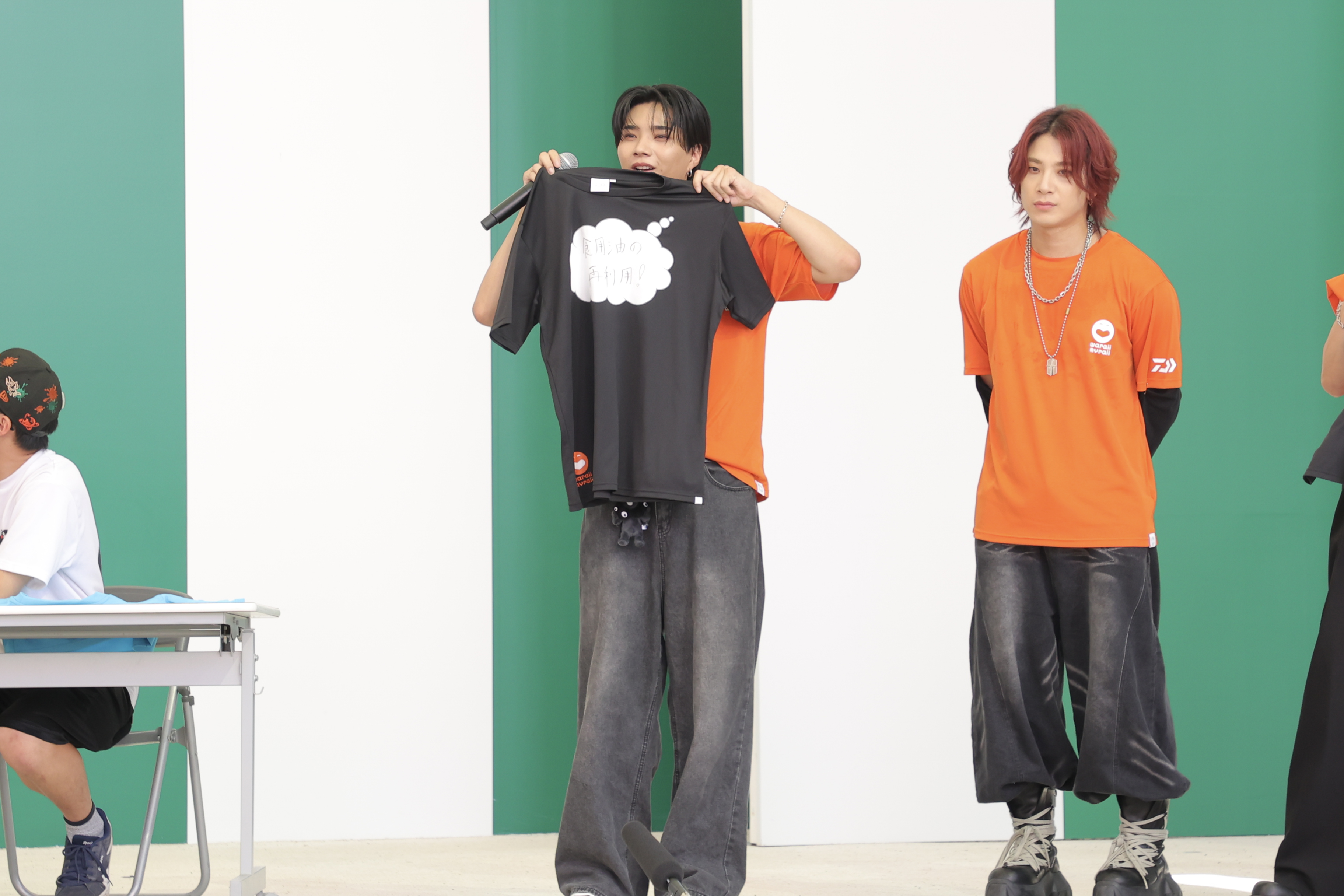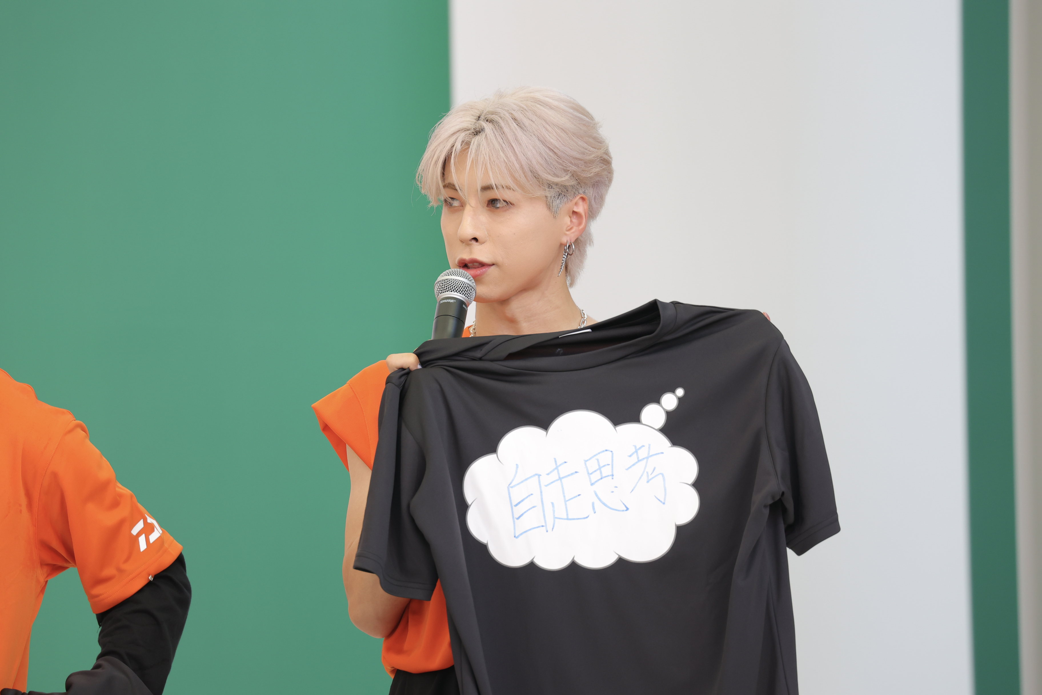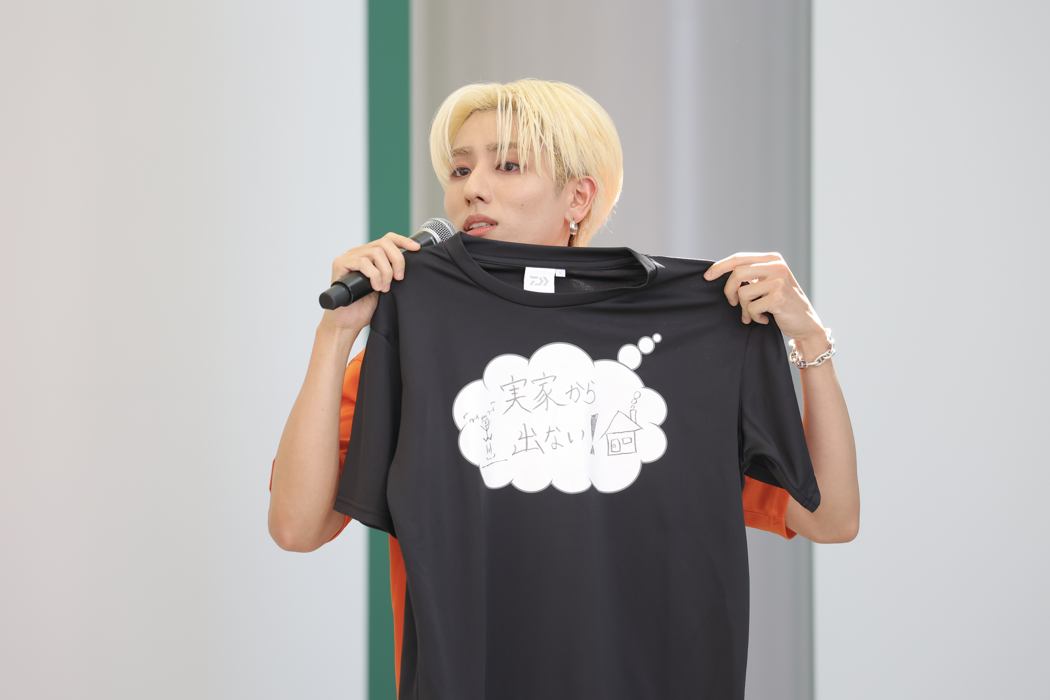 その正反対で、浦野の目標は「実家から出ない」!? 全員がTシャツを見せると、改めて会場から拍手が起こりました。